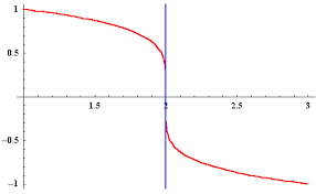 این تابع در: x = 2 و x = 3 یا در نقاط P 1 (2،0) و P 2 (3،0) مشتق پذیر نیست.